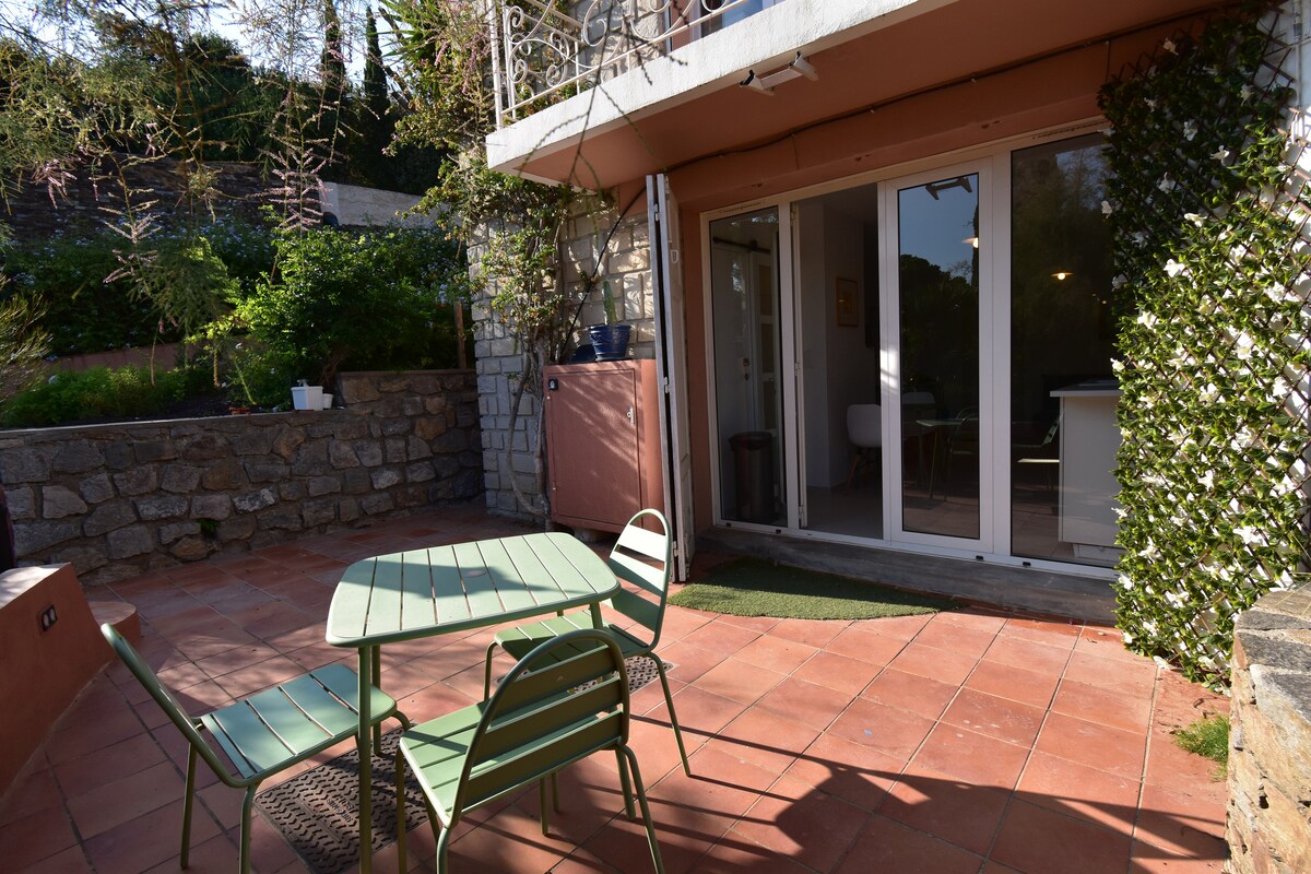 Bienvenido a Cigalet. A 50 metros a pie de la playa, en la Capte en la península de Giens, T3 ideal para 4 personas (tiene capacidad para 6 personas), 51 m2, cocina, baño con ducha, sala de estar, 2 dormitorios, uno de ellos con 3 camas , incluida una cama doble litera + una cama para una persona Aire acondicionado reversible. Jardín de 75 m2 con terraza. Muebles de exterior con mesa de jardín. Barbacoa de carbón + plancha. Sombrilla de playa. Aparcamiento gratuito para 1 vehículo en el jardín.