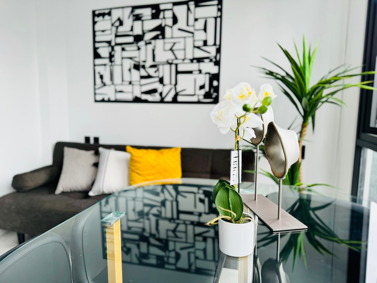 Warm Suite in floor #13 with 1 Queen size bed (high quality bedsheets, duvet and memory foam pillows), 1 sofa bed, maximum 3 guests. TV 75” QLED 4K, Disney+, Electric Black out Curtains, fully equipped kitchen with big Samsung fridge, digital modern oven, microwave and extractor, toaster, Coffee maker, Fast WIFI 343 mbps, working and dining Desk with view of metropolitan forest, clothes closet, Iron, ironing board, and 1 full bathroom with city view, hot water, towels, soap and shampoo