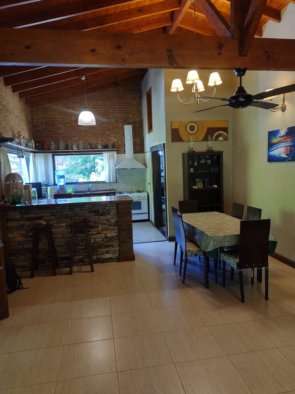 Casa Ideal para 2 FAMILIAS y "REDUCIR COSTOS". Tiene amplia capacidad. Se adapta a las necesidades del grupo familiar. Con un total de 4 habitaciones, este alojamiento incluye "2 habitaciones matrimoniales" que ofrecen privacidad. Cuenta con 2 habitaciones adicionales equipadas con 5 camas. Los 2 baños agilizan las rutinas diarias. Cómodo living/cocina /pasillo con Chimenea y salamandra. Amplio quincho con parrilla y toilete. Jardin con Fogonero, pérgola, hamaca paraguaya y reposeras para relax.