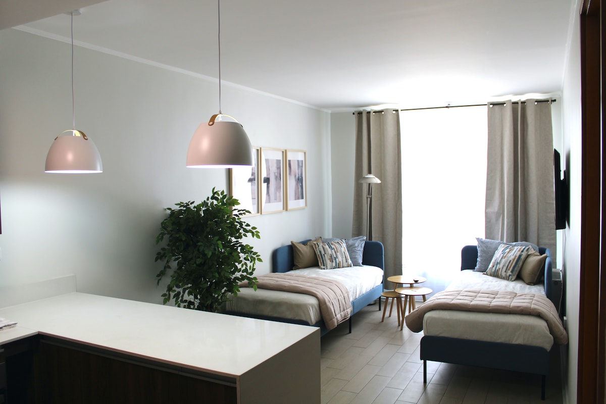 Cómodo departamento para 4 personas, con un ambiente cálido y luminoso, con todo lo necesario para hospedarse con tranquilidad. Wi fi rápido, TVs inteligentes, canales streaming, lavadora y cocina totalmente equipada. Cuenta con conserjería 24/7. En los espacios comunes del edificio cuenta con piscina y cafetería.