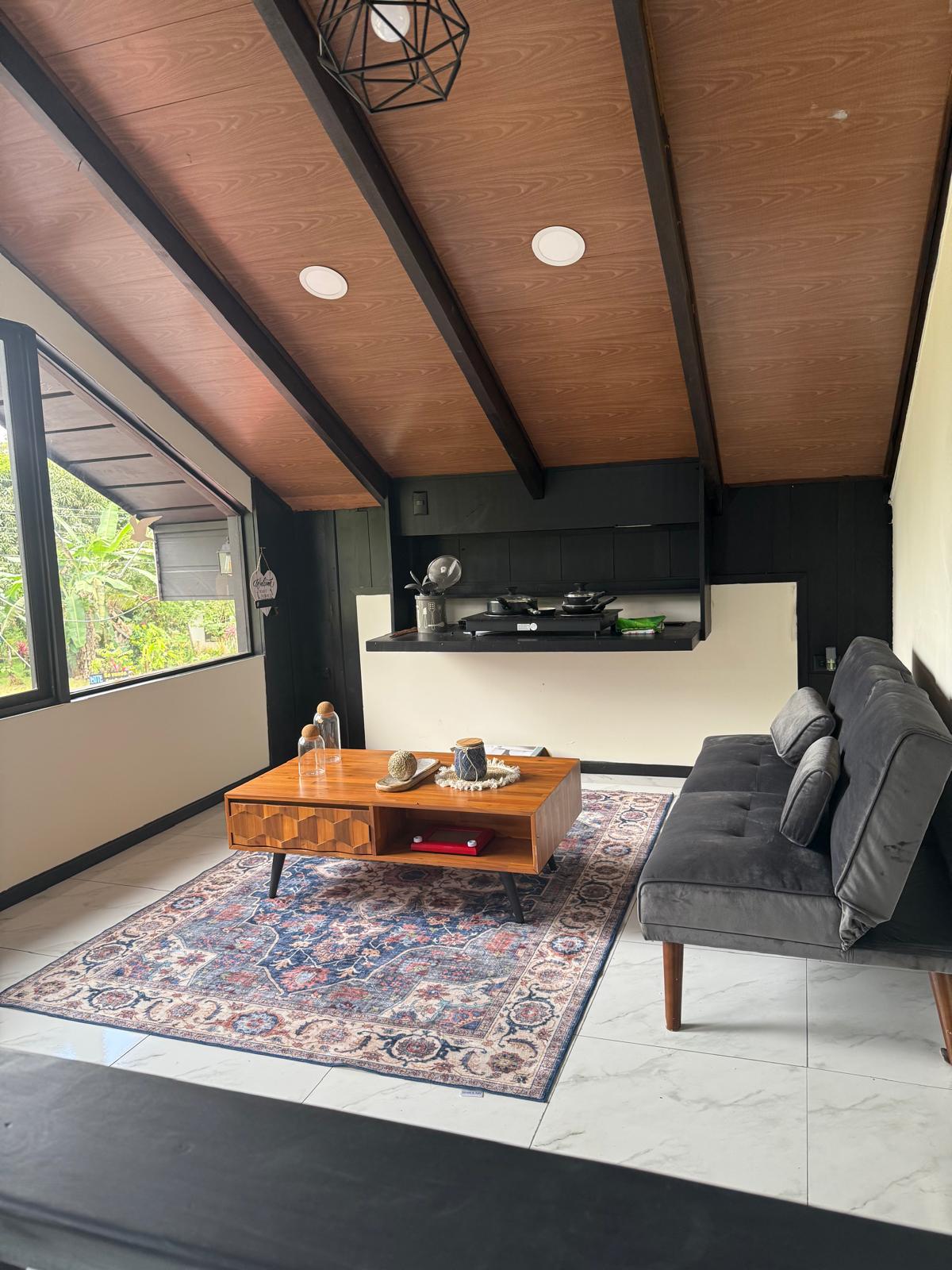 Black Village by Arenal Deluxe. Have fun and relax with family&friends in this new elegant village with great views to Arenal Volcano in front and famous "La Fortuna" river and valley in the sides. Connect with nature at "Heliconias", our La Fortuna river area in our patio, it is super relaxing and private. We also offer spa treatments there and they are truly unforgettable. Have fun in a beautiful cozy common area for grill&chill, full kitchen, parking lot included, A/C. And more!