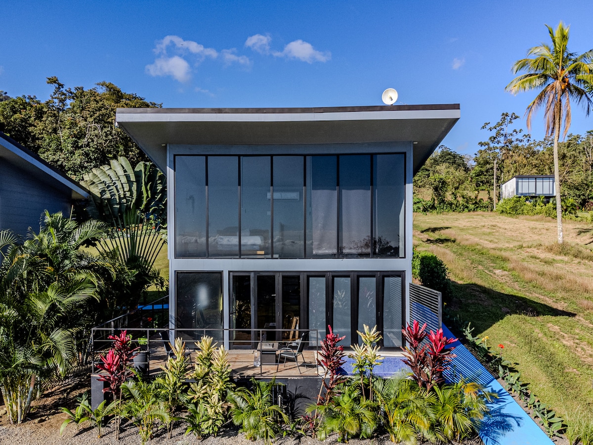 Welcome to Tres Volcanes, a luxury wood & glass Cabin located within a 56 acres ranch. Strategically built at the highest point of the property, from where you can see the Arenal, Tenorio and Rincón de la Vieja volcanoes on the horizon. You will be able to rest with the sound of the river that passes at the foot of the mountain and wake up to have a cup of coffee while the mist disappears through the treetops. Just in time to walk to the dairy and experience milking by your hands & collect eggs.