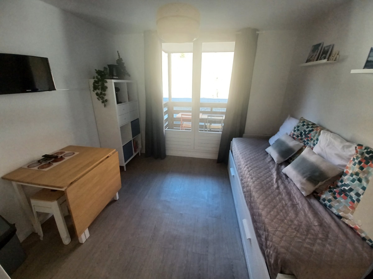 Apartamento de 28 m2 muy luminoso, con balcón y vistas abiertas al valle de la fuente del Verdon. Wifi 15 MB/s Varias salidas de senderismo a la vuelta de la esquina El departamento se compone de: - Una habitación con cama doble 140x190 - Cocina equipada - Zona de comedor - Sala de estar con 1 sofá convertible 140x190 - Baño con bañera - WC separado El complejo ofrece además: - Piscina climatizada (abierta del 1 de julio al 31 de agosto) y tumbonas