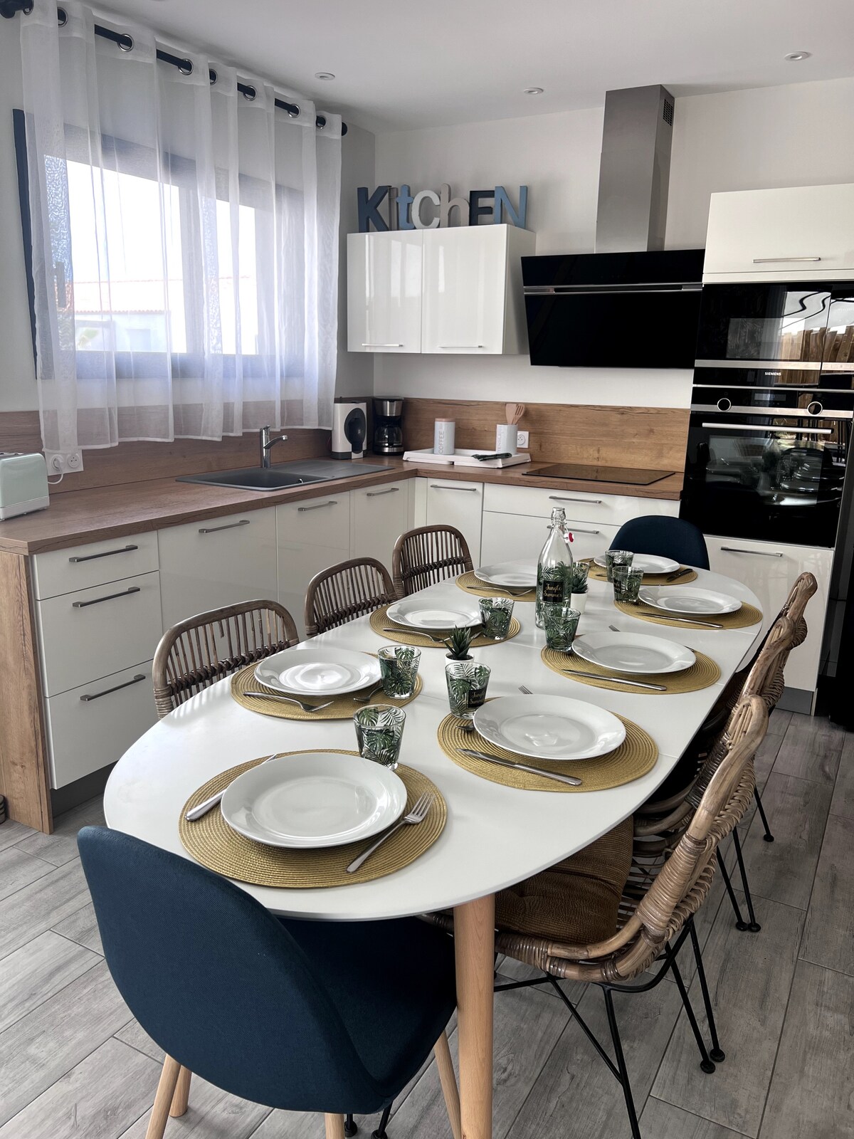 Entièrement rénovée en 2025, cette charmante maison de bourg de 90m², classée 3 étoiles, se situe à Ste Flaive des Loups. Elle est idéalement située pour visiter la Vendée. A 20 min des Sables d'Olonne par la 2X2 et 50 min du Puy du Fou. L'Echappée accueille 4 personnes pour un agréable séjour dans une ambiance rétro chic. Au rdc, découvrez la pièce à vivre, spacieuse, ouverte sur une cuisine équipée. L'étage dessert 2 grandes chambres chaleureuses avec chacune leur salle d'eau et WC.