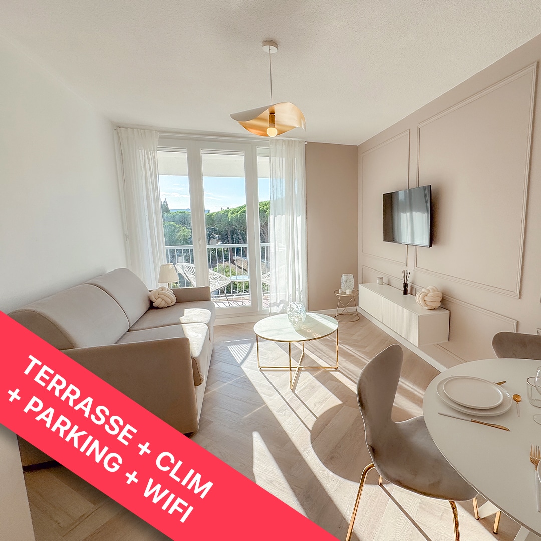 Terrasse 60m2,parking,aperçu mer,piscine,Clim,WiFi