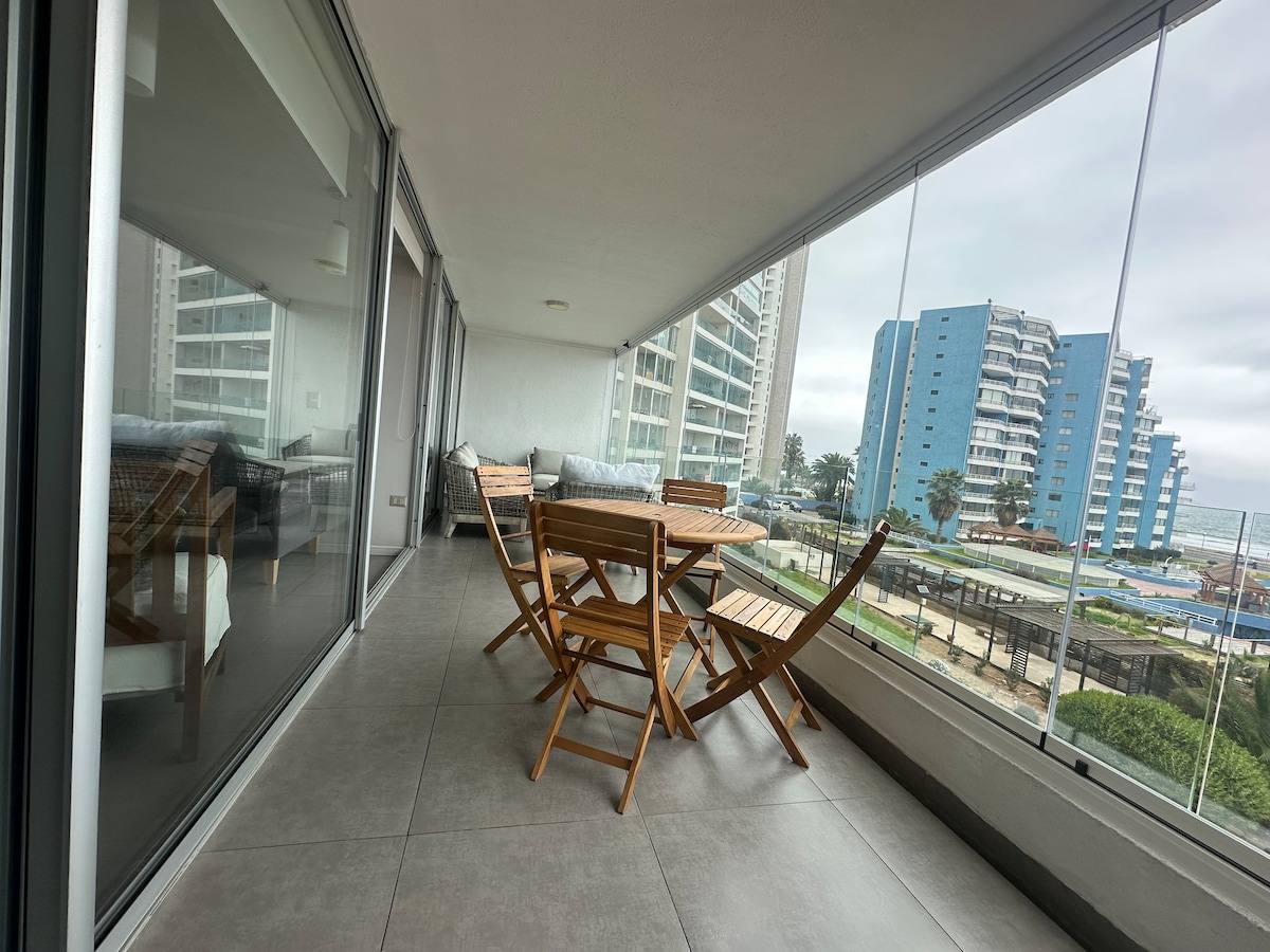 Espectacular apartamento con vista al mar en playa La Herradura,. Conexión directa a la autopista, con estacionamiento, a 3 minutos caminando de la playa, cruce seguro (puente peatonal). A pasos de restaurantes, supermercados, farmacias y otros comercios. Incluye las sillas de playa para que puedas ir cómodamente a la playa en familia. Acceso a piscina, gimnasio y quinchos dentro del recinto. *Actualmente hay una construcción al lado con ruido en horario laboral*