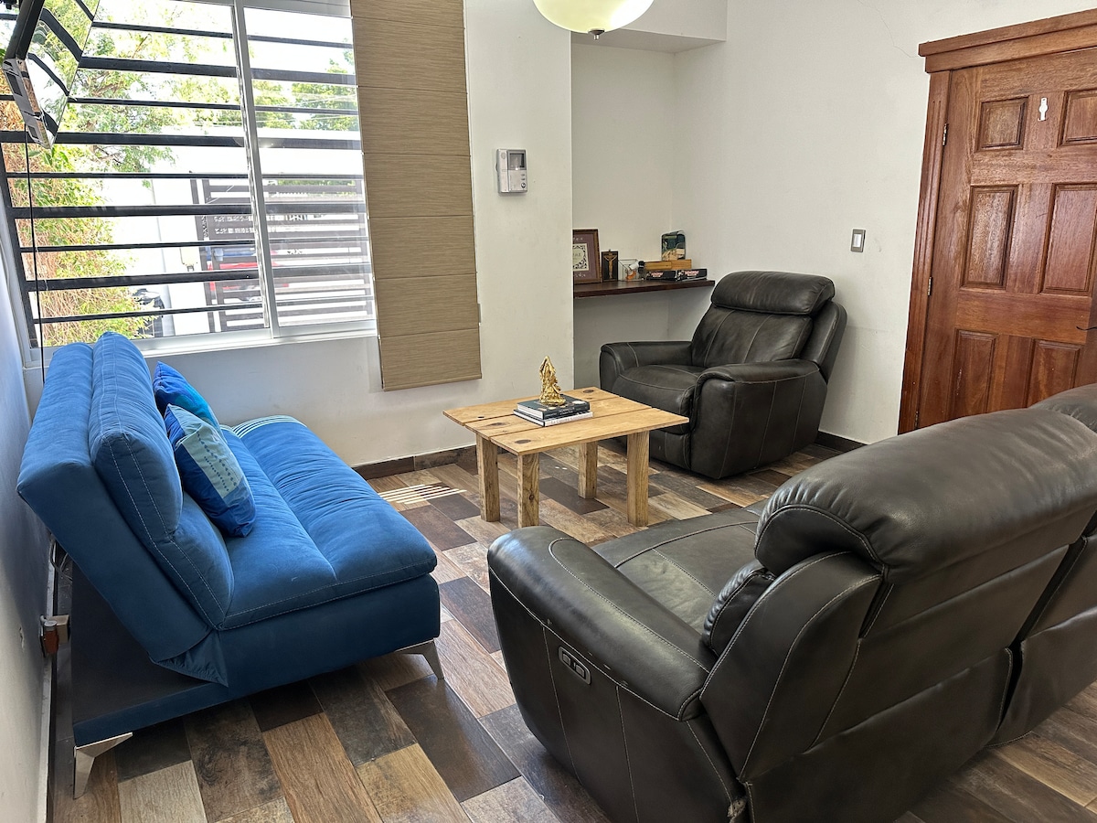 Departamento totalmente independiente en planta baja con minisplit para estancias familiares o de trabajo. Cocina Equipada.-Estufa, refrigerador, cocineta, comedor, microondas, cafetera. Recamara.-Cama matrimonial, mini Split, tv 50 pulgadas. 1 baño completo. Sala.- Un sofacama ventiladores. Patio.- patio pequeño con lavadora y tendedero. Cuenta con minisplit (frio y calor)