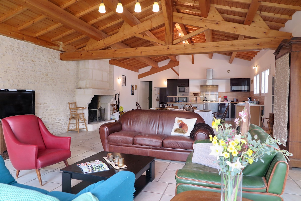 Maison de charme située dans un joli village, typique de la région. Très bien située, accès rapide en voiture à tous les lieux d'intérêts de la région : La Rochelle, Les iles de Ré, Aix et Oléron, Rochefort, Venise verte, marais poitevin, Royan et la côte sauvage. Boulangerie et restaurant à 100 mètres, terrain de foot, City stade, skate park, aire de jeux, court de tennis dans le village à 5 minutes à pied. Hypermarché et tous les commerces à 5 minutes en voiture (Surgères). Prêt de vélos.