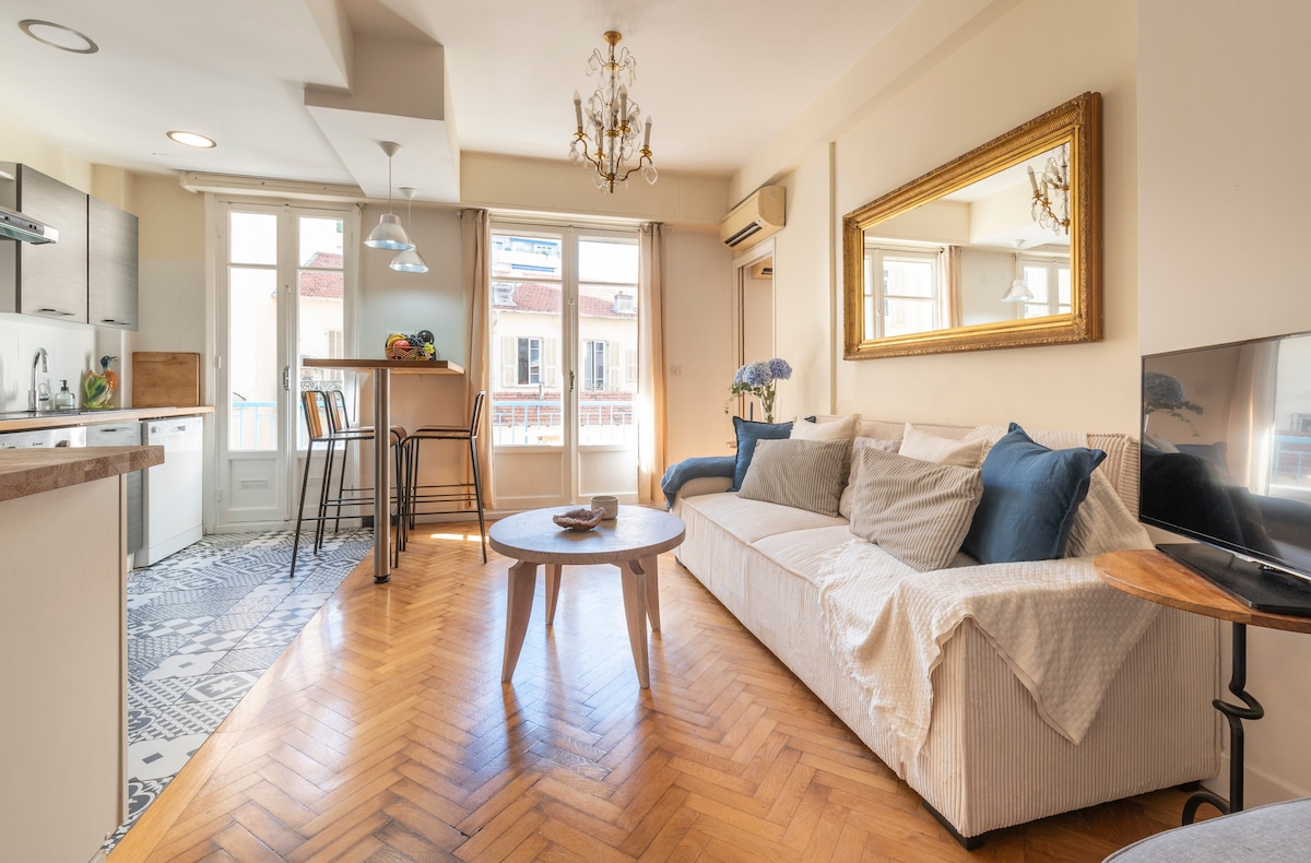 Situado en el corazón del casco antiguo de Niza, el apartamento tiene impresionantes vistas panorámicas al mar desde el balcón y está justo enfrente de la playa. Situado en las «Ponchettes», se remonta al siglo XVIII, pero ha sido reformado con buen gusto. Ten en cuenta que la configuración del apartamento no permite el alojamiento de personas con movilidad reducida.