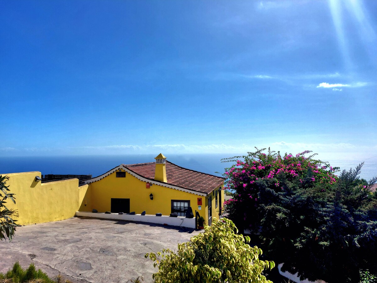Casa de vacaciones independiente en la finca de 7,5 ha Hacienda La Palma. Tranquilidad y aislamiento absolutos con un microclima único. En medio del viñedo, La Placita ofrece un acogedor refugio para 2 personas. Disfrute de sus mejores días con unas vistas increíbles del interminable océano Atlántico y un cielo con fantásticas formaciones nubosas, que se convierte en un claro cielo estrellado tras una resplandeciente puesta de sol roja por la noche.