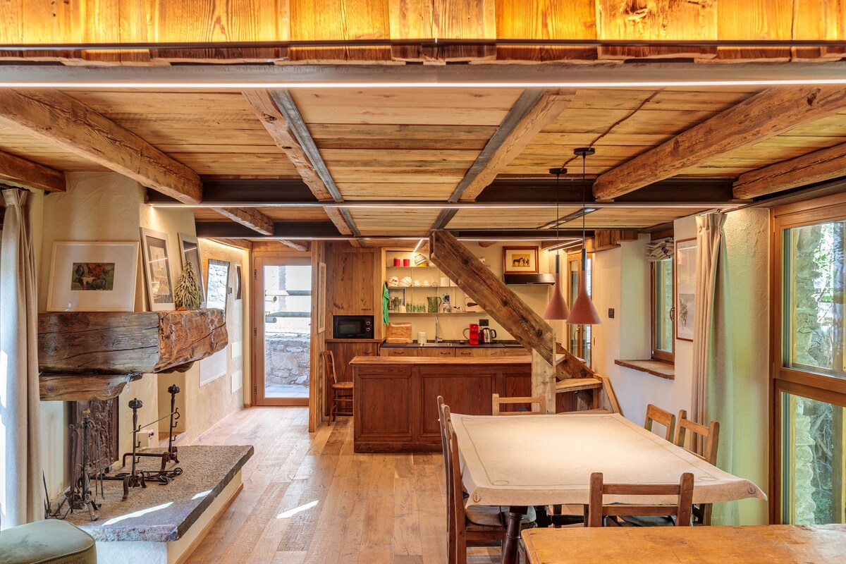 Encantador chalet antiguo de madera y piedra con vistas al Mont Blanc