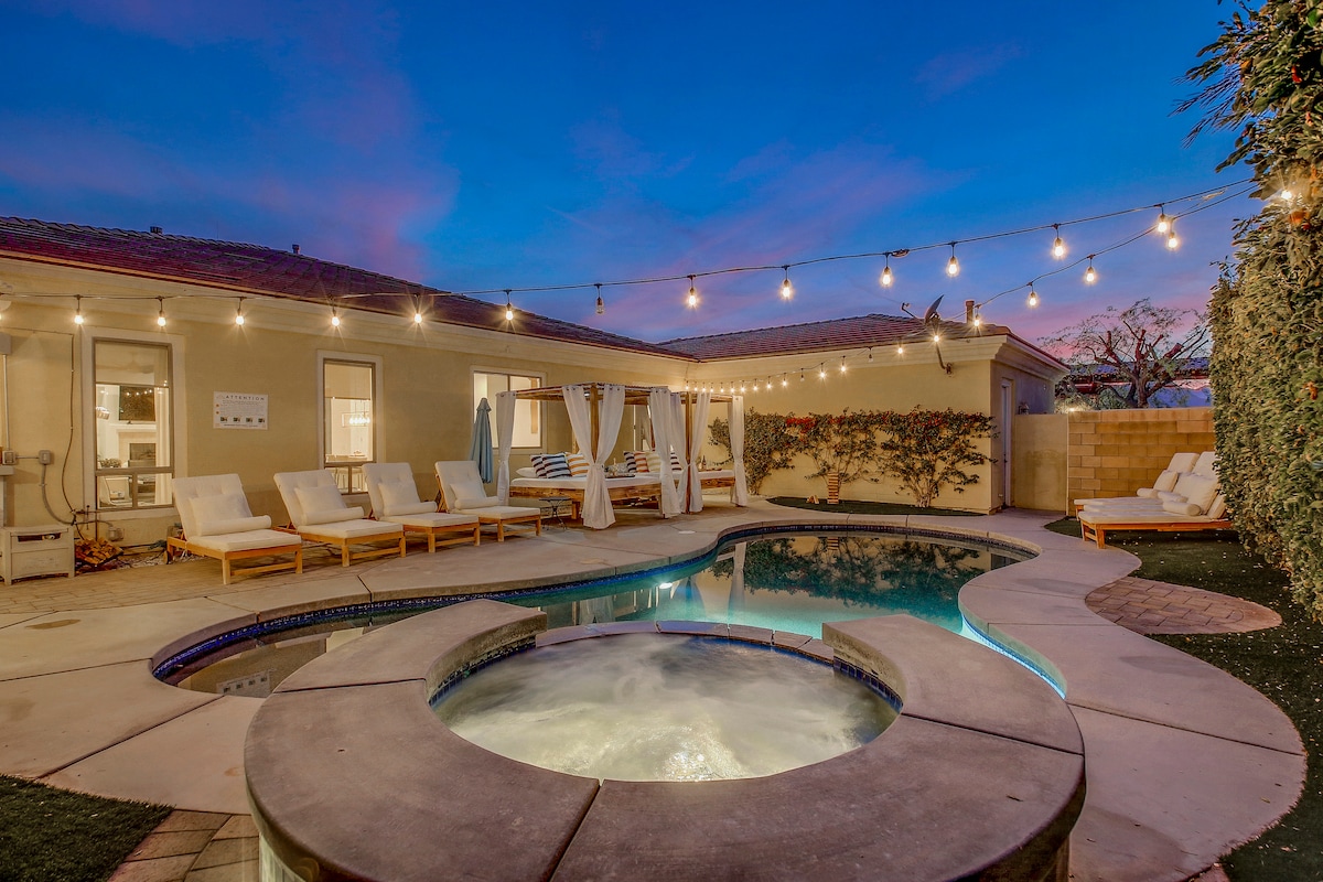 Bienvenido a Renewal Retreat, ¡su escapada privada al desierto donde la comodidad se une a la diversión! 🏊♂️ → Relájate junto a la piscina climatizada o sumérgete en el spa con cascada 🔥 → Reúnanse alrededor de la chimenea al aire libre o del salón con fogata ⛳ → Disfruta de la diversión ecológica y de una espaciosa cena al aire libre Somos anfitriones nuevos, pero crear estadías relajantes y rejuvenecedoras es lo que mejor hacemos. ¡Reserva tu escapada inolvidable hoy mismo!