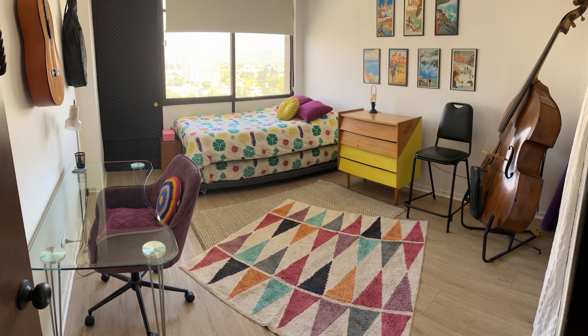 Disfruta de un espacio acogedor, que brinda todas las comodidades que necesitas y en la mejor ubicación. A dos cuadras de la estación de Metro Simón Bolívar, cerca de centros comerciales, de salud y las principales avenidas. Accedes mediante una entrada independiente y cuentas con estacionamiento seguro y terraza privada. El estudio tiene aire acondicionado, cocina equipada, ropa de cama y baño, entre otros. Este espacio está dentro de nuestra propiedad, pero es totalmente independiente.