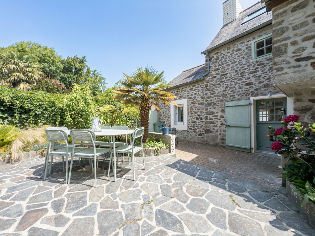 "Petit French Cottage" 3 dormitorios, capacidad para 5 personas (2 dormitorios dobles grandes (uno tamaño king) + 1 dormitorio individual) 2 zonas de comedor al aire libre: patio y jardín, Parrilla, 2 tumbonas A 2 minutos a pie del agua: natación, kayak, vela. Estufa de leña: consulta antes de usarla Junto a Dinard, a 5 minutos, St Lunaire, St Briac, a 10 minutos, St Malo, a 15 minutos. Espacio de trabajo + wifi de fibra Apto para niños: juguetes para niños pequeños, silla alta, cuna Babybjorn Cafetera Delonghi Estacionamiento privado. Estrictamente NO se admiten animales, se permite fumar.