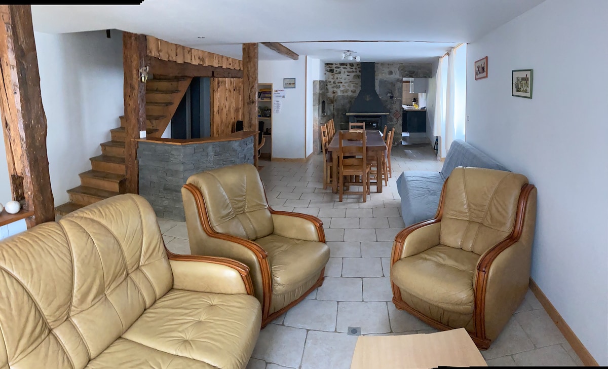 Habitaciones amplias, techos altos (3,80 m), bonita luz natural, construcción de piedra y madera, muebles antiguos, electrodomésticos nuevos, calefacción central + estufa de leña. entorno aislado, natural y tranquilo. cerca de las tiendas (a 6 km de Orgelet y a 10 km de Lons le Saunier). Cerca de muchos lugares de interés turístico. Ideal para salir de excursión, abierto todo el año, alquiler mínimo de 2 noches, fin de semana o semana. 5 camas (1 dormitorio+1 convertible).
