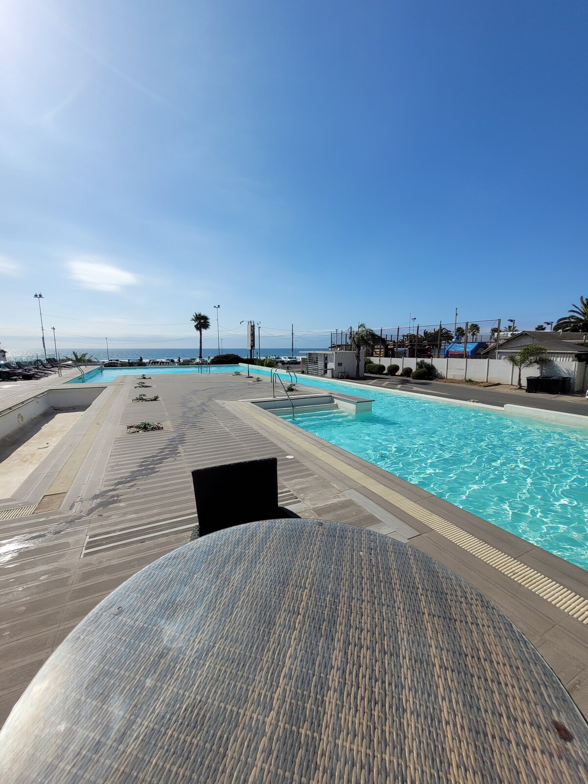 Departamento en primera línea en Avenida del Mar, con espectacular vista y una ubicación ideal. Cercano a restaurantes, cafeterías, y casino Enjoy. El departamento ofrece un ambiente acogedor, cómodo, e ideal para viajes cualquier época del año. Totalmente equipado, cuenta con wifi, TV, sábanas, toallas, horno, microondas, cafetera, parrilla eléctrica y todo lo necesario para una experiencia práctica y agradable. Además, de contar con piscina, perfecta para relajarse y aprovechar al máximo.