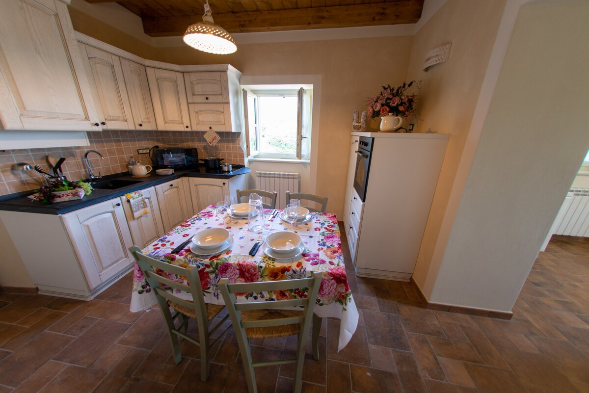 Apartamento con vistas a los Apeninos de la Toscana-Emiliana, a pocos minutos a pie del pueblo medieval de Bagnone, que incluye entrada a la sala de estar que consta de cocina equipada, comedor/sala de estar, dos dormitorios dobles y un baño en la planta baja. En el segundo piso hay un gran ático con un dormitorio doble, una cama de sillón individual y un baño. Jardín con barbacoa y comedor exclusivo, piscina compartida.
