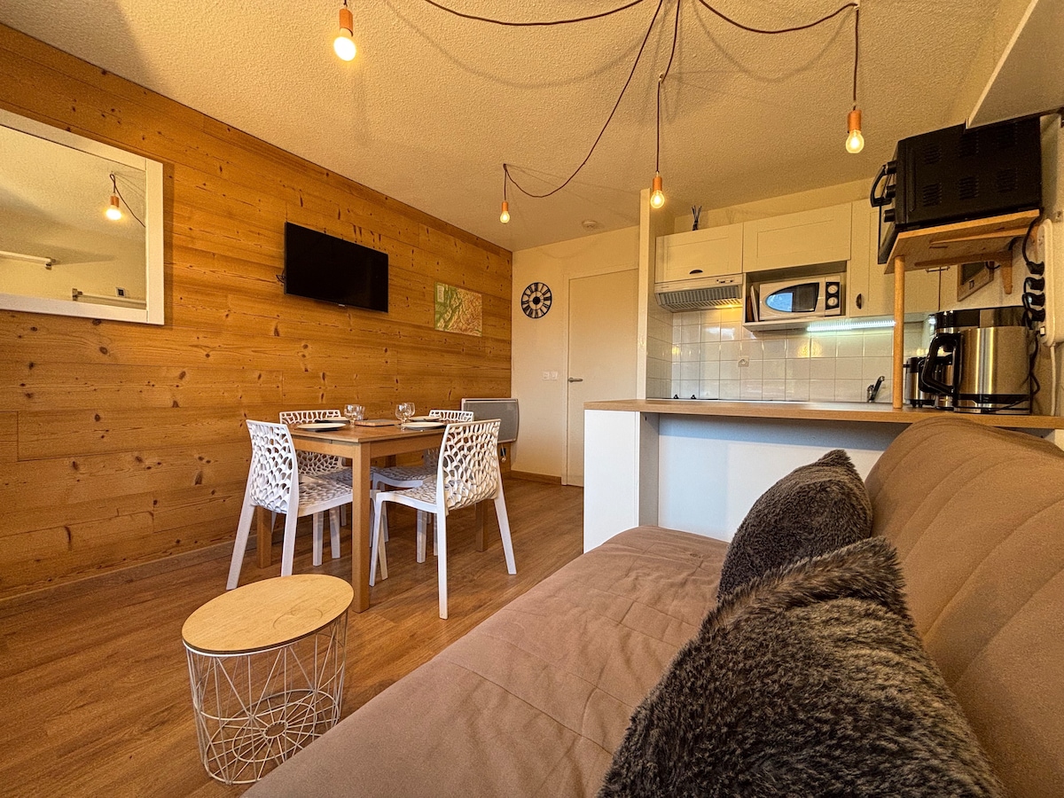 Acogedor apartamento a pie de pista ofrece una vista a la montaña y acceso directo al dominio de Courchevel. Posée una habitación con una cama doble, una sala de estar con un sofá cama y una cocina adyacente, así como un área de literas para niños. También dispone de un baño, un aseo separado y una terraza. Cerca hay servicios de alquiler de esquís, una zona para esquiadored debutantes, un pequeño supermercado y varios restaurantes. Toallas y sábanas no incluidas (servicio de alquiler posible).