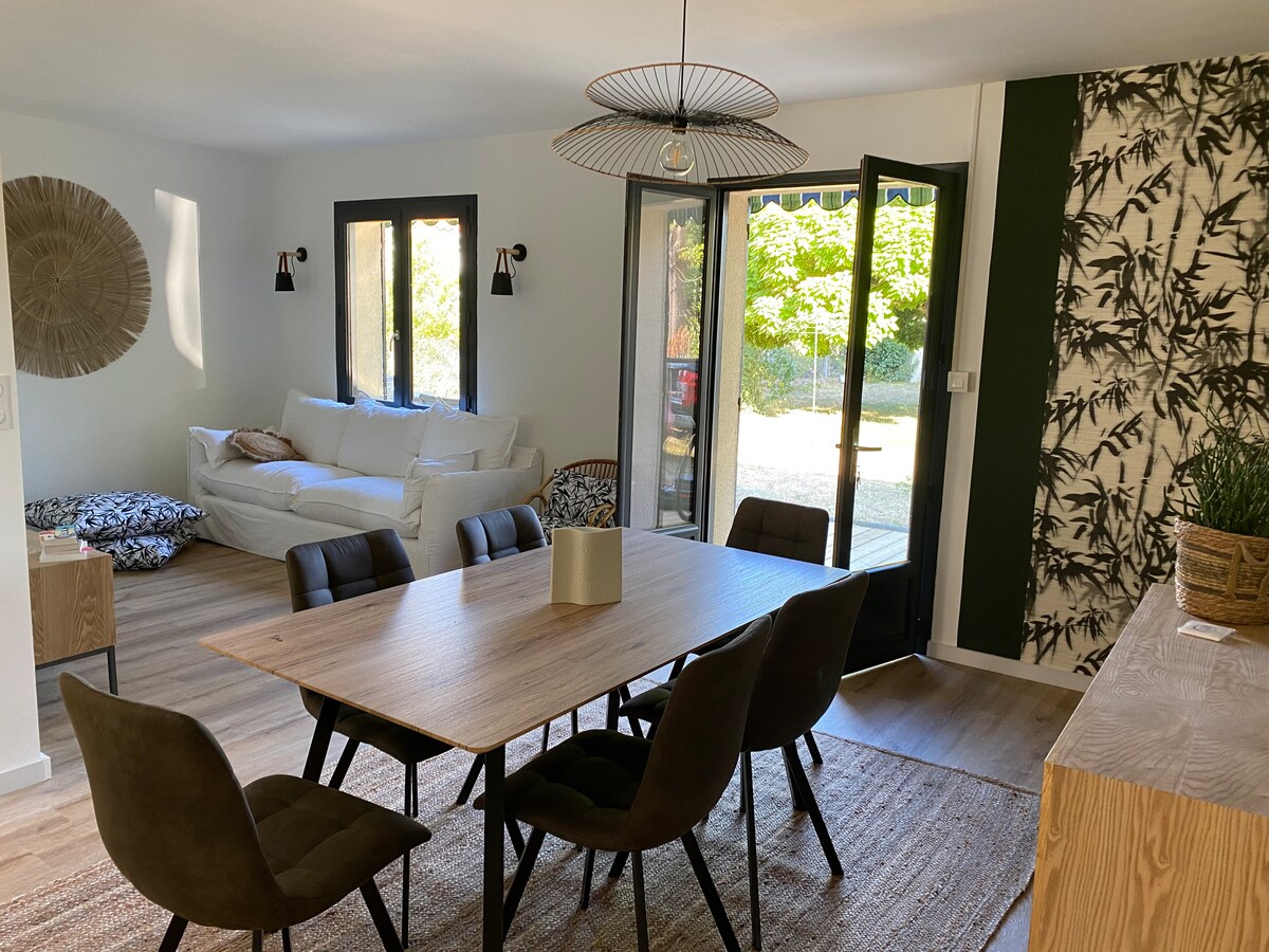 Situado en una zona verde, ofrecemos un alojamiento independiente dentro de nuestra propiedad de 1500 m² con árboles frutales, olivos, palmeras... En la planta baja, cocina abierta al salón En la planta superior, suite principal con aire acondicionado, cuarto de baño con ducha italiana, inodoro suspendido Cama doble de 180*200, ropa de cama de calidad, sábanas, toallas, detergente para platos, esponja y paños de cocina Jardín cerrado, piscina de 11*5 climatizada de mayo a septiembre dependiendo de las condiciones climáticas
