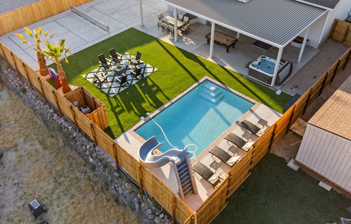 • Piscina privada climatizada totalmente vallada (cargo de 100 $ por día para calentar) •Bañera de hidromasaje (siempre calentada) •Pista privada de pickleball •Canasta de baloncesto Wifirápido • Cargador rápido de vehículos eléctricos: 50 amperios (Home Flex nivel 2) •9 dormitorios. •4 baños completos •Peloton •Sillón de masaje de alta gama de 5000 $ •Nueva PS5 • Sala de juegos con 5 videojuegos arcade • Capacidad para 35 personas en camas • A 20 minutos de Zion • Smart TV en todas las habitaciones • Parrilla de gas natural •Fútbol • Hockey de aire • Ping pong • Baloncesto de doble tiro •Mesa de billar. • Muro de escalada en roca •Campo de minigolf privado