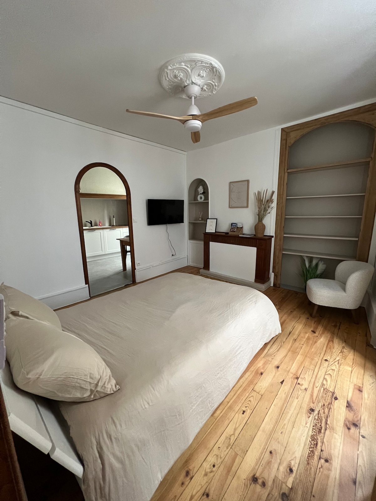 Disfrute de un alojamiento elegante y céntrico con este nuevo estudio en el corazón del bonito pueblo de Varilhes (al lado de la iglesia). Con su cama doble (de 140 cm), es ideal para dos personas. Le ofrece todas las comodidades que necesita ducha y lavabo, cocina completa equipada con lo esencial, lavadora, televisión, wifi, televisión de 43 pulgadas. El apartamento está en la planta baja. No hay escaleras que subir. Aparcamiento gratuito en el pueblo y en la plaza adyacente.