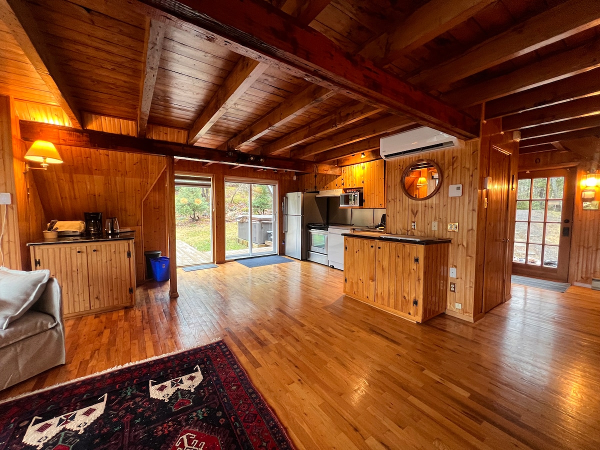 El Chardonnay: Chalet escandinavo-chic con spa privado en Chertsey. Disfrute del invierno entre esquí en Montcalm, raquetas de nieve en el bosque de Ouareau y paseos en trineo de perros. Relájese en el spa al aire libre bajo la nieve, alrededor de la chimenea o en la comodidad de un chalet luminoso y cálido, perfecto para familias, amigos o teletrabajo a menos de una hora de Montreal. ❄️✨