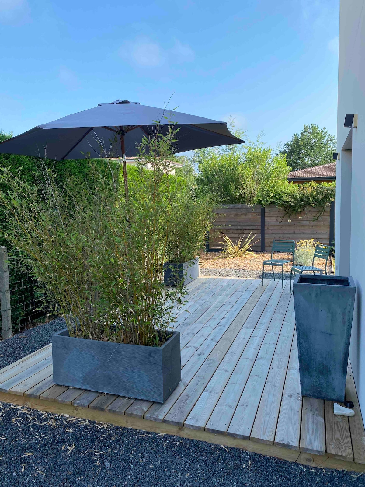 Alojamiento de 60 M² apto para familias (con 1-2 o 3 hijos), 1 pareja o personas que viajan solas. TV francesa por antena terrestre y TV extranjera por cable. 2 aires acondicionados, plancha, barbacoa, internet de fibra óptica por cable rj45 o wifi dentro de la vivienda y en el jardín. Alojamiento para no fumadores en el interior, fumadores en el exterior. cuna, trona, bañera para bebés y cochecito individual o doble si es necesario.
