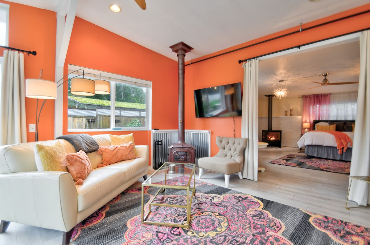 The relaxing farmhouse decor of the Urban Suite provides an island of luxury in a hip neighborhood. Conveniently located minutes to downtown Olympia, the waterfront, the capital, farmers market, waterfront and restaurants. It’s a perfect location for travelers looking to experience the local vibe. Visitors can enjoy our quaint neighborhood bakery right around the corner and enjoy mission creek park from the back yard. The Suite is very private. There is an age requirement of 21 yrs old.