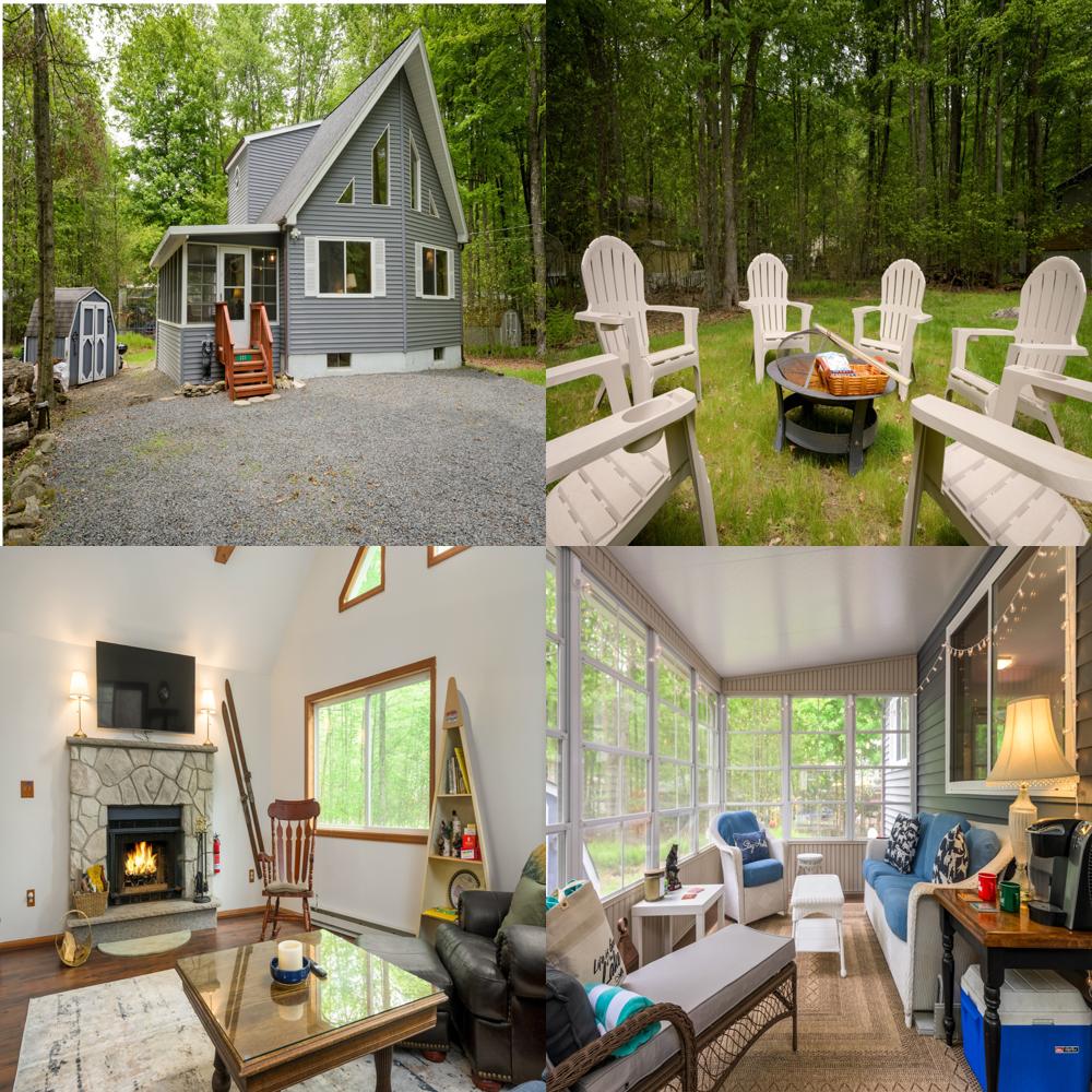 ¡Encantador refugio en el bosque en los Poconos! ¡1er verano en Airbnb! Esta acogedora cabaña con estructura en A cuenta con una habitación de 3 estaciones, una amplia sala de estar con chimenea, cocina totalmente equipada, suite principal con cama king y un dormitorio queen. Los niños humanos y peludos son bienvenidos. Disfrute de la fogata al aire libre, la terraza con parrilla y las serenas vistas del bosque, perfectas para escapadas relajantes.