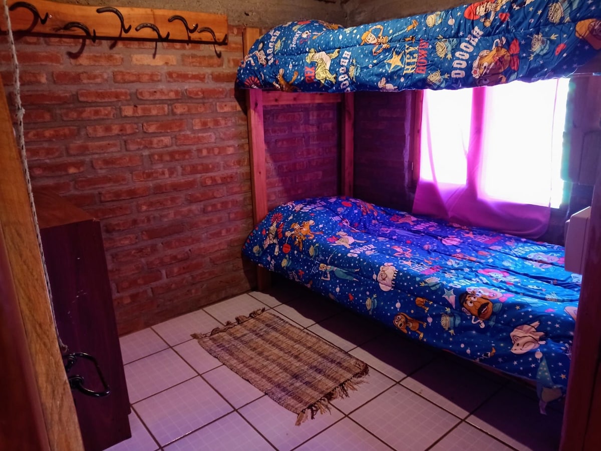 Nuestra cabaña para 2 personas se encuentra totalmente equipada, tenés cocina, heladera, WiFi y TV satelital. Baño completo y te damos la ropa de blanco(sábanas y toallas) Te ofrecemos un desayuno casero con torta y dulces de producción propia (opcional con un adicional) . El bosque empieza a 50m de la cabaña y el rio azul esta en el fondo de la chacra. Hay una cama extra para un niño menor de 4 años