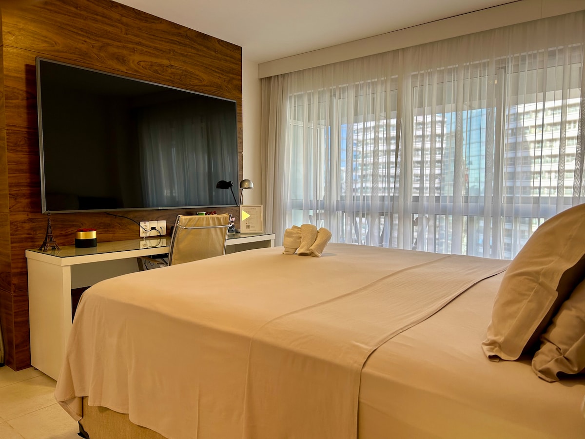 ¡Para aquellos que no renuncian a la comodidad y la elegancia en el corazón de Brasilia! Piso de 35 m², en un hotel. Tanto si tu estancia es corta como si es larga, tendrás todo lo que necesitas para sentirte como en casa. Ambiente privado y tranquilo, cama tamaño queen, ropa de cama premium y minicocina equipada con encimera, microondas, minibar y cafetera. Balcón, garaje y acceso al gimnasio, piscina, sauna y restaurante. Ubicación perfecta: SHN, Esplanada, centros comerciales y parques. Vive una experiencia única en Brasilia