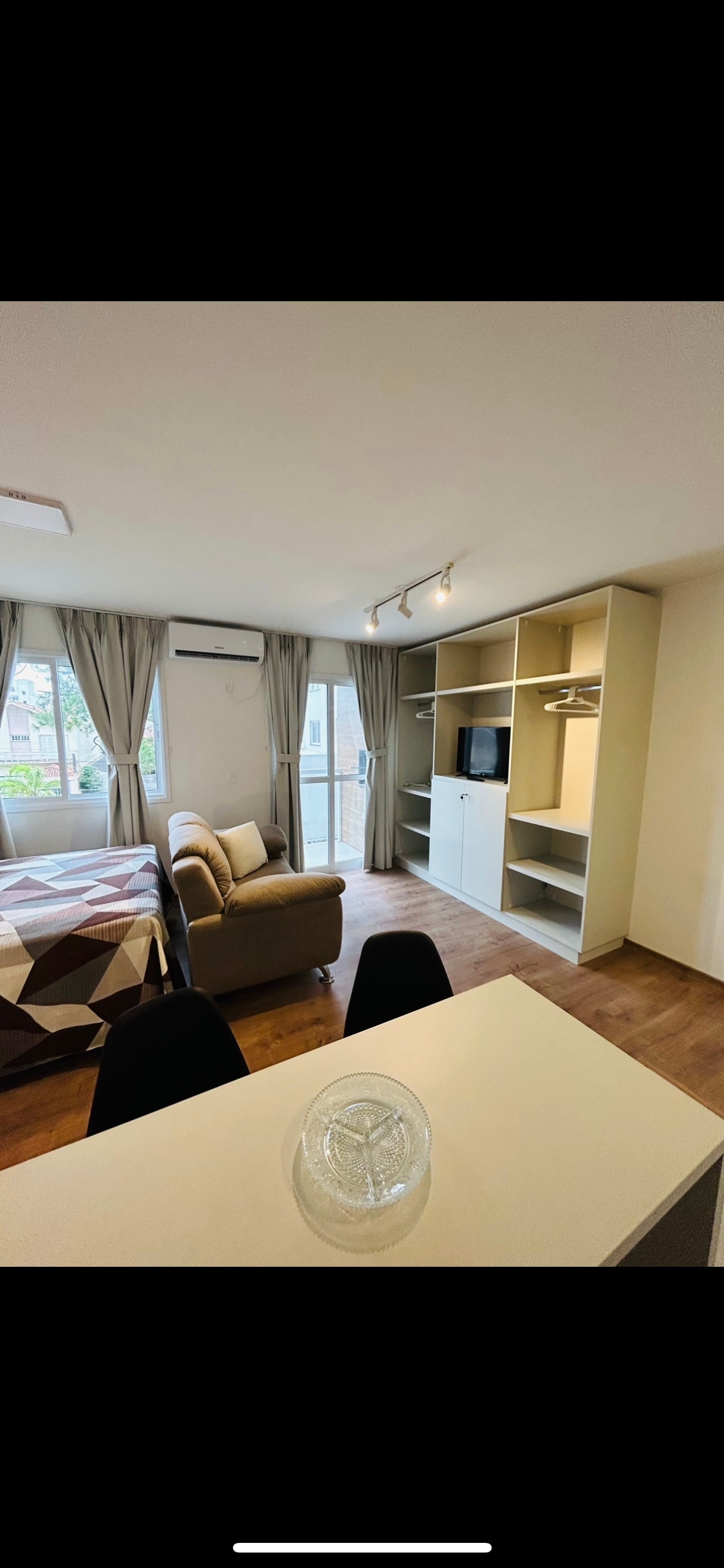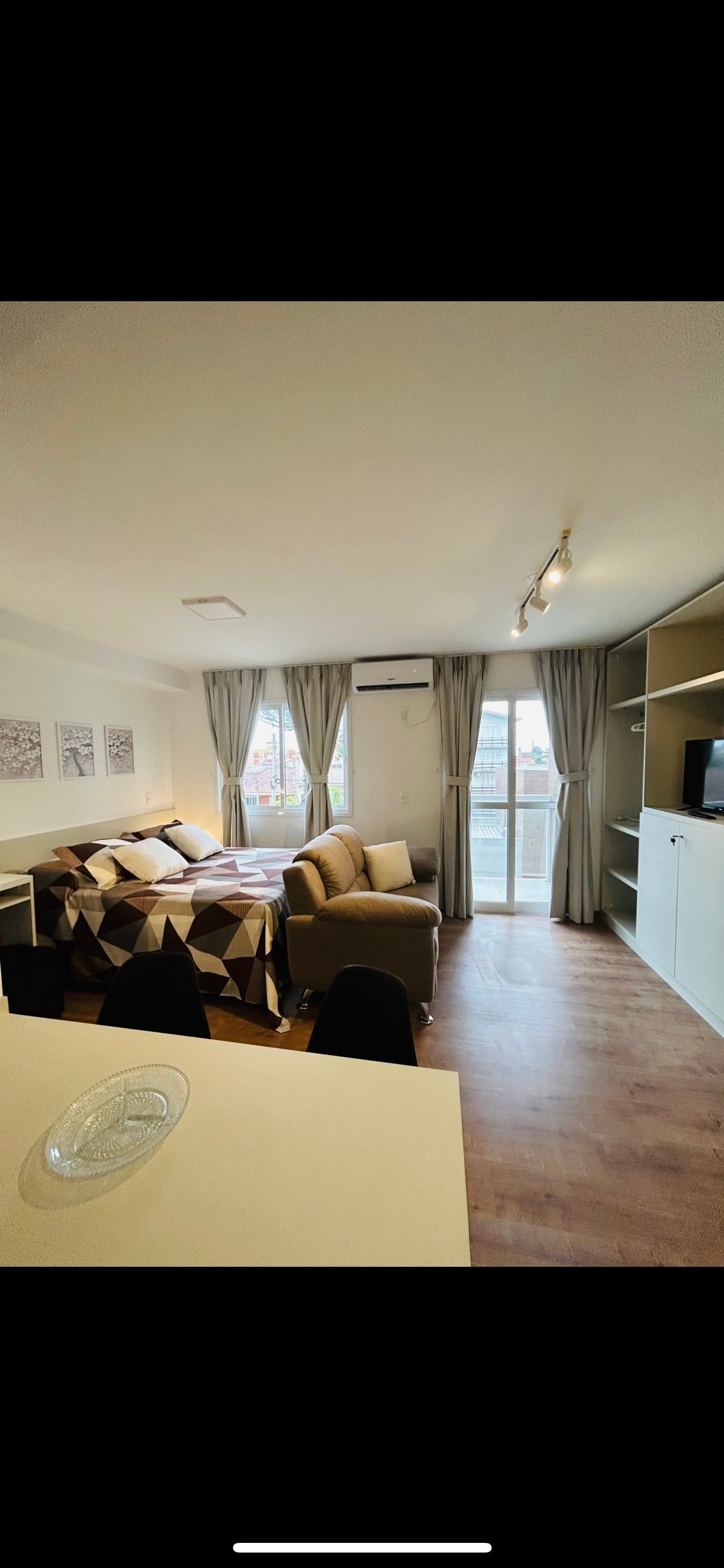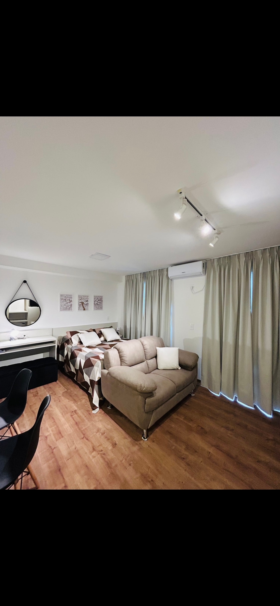 ✨️ Loft InCanto | Diseño y comodidad en Parque Una Refugio sofisticado en el barrio más seguro de Pelotas. • Lo más destacado: TV de 42" y 180°, IPTV y streaming. • Comodidad: aire caliente/frío, grifos calientes, cama premium con almohada y ajuar completo. • Cocina: inducción, horno, freidora de aire, microondas y utensilios gourmet. • Instalaciones: secador de pelo, plancha, amenidades y kit de emergencia. • Seguridad: recepción 24 horas y estacionamiento cubierto. El equilibrio perfecto entre practicidad y bienestar. ¡Reserva tu experiencia!