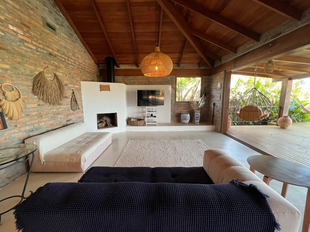 O incrível visual para o oceano, Praia da Guarda e a imensidão verde da Serra do Tabuleiro convida a relaxar e desfrutar da natureza integrada ao interior da casa. Ideal para férias ou home office. Arquitetura rústica, moderna, aconchegante com decoração praiana. A 800 metros da praia, caminhada com subidas e descidas. Próximo, 1km, a mercados, restaurantes e postos de conveniência. Fácil acesso à passeios para Praia do Rosa ao sul, Praia da Guarda e Floripa ao norte.
