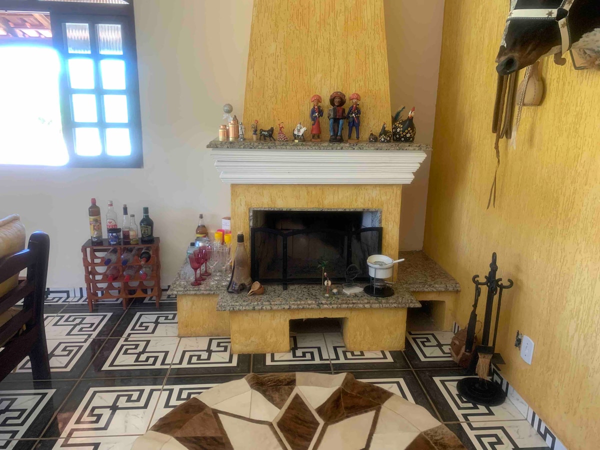 Relájate con toda la familia en este alojamiento tranquilo. Casa de 3 dormitorios, sala, gran cocina de 40 m2, lavabo, cocina de gas, estufa de leña, horno y barbacoa. Contiene piscina, billar. El aire puro de la montaña, contiene un bosque que puede hacer un pequeño sendero. Perrera para mascotas. Se encuentra a 3,9 kms. del sitio de eventos "Aldeia do Outro Mundo" , a 12 kms. da Cachoeira grande y a 25 kms. de São Luiz do Paraitinga.