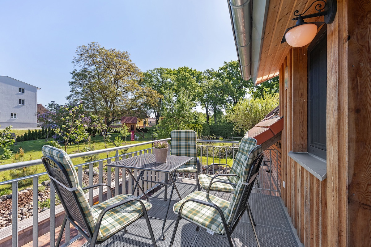 Este apartamento único ocupa el ático de un edificio histórico, que forma parte de edificios rurales. Tiene una entrada independiente de 80 m2. El apartamento incluye una gran sala de estar con rincón infantil, 2 dormitorios, cocina totalmente equipada, comedor con una gran mesa y baño. Bajo petición, ofrecemos un sótano histórico donde podrás pasar una bonita noche junto a la chimenea y una copa de vino. Informa el deseo de utilizar el sótano después de reservar o al llegar.