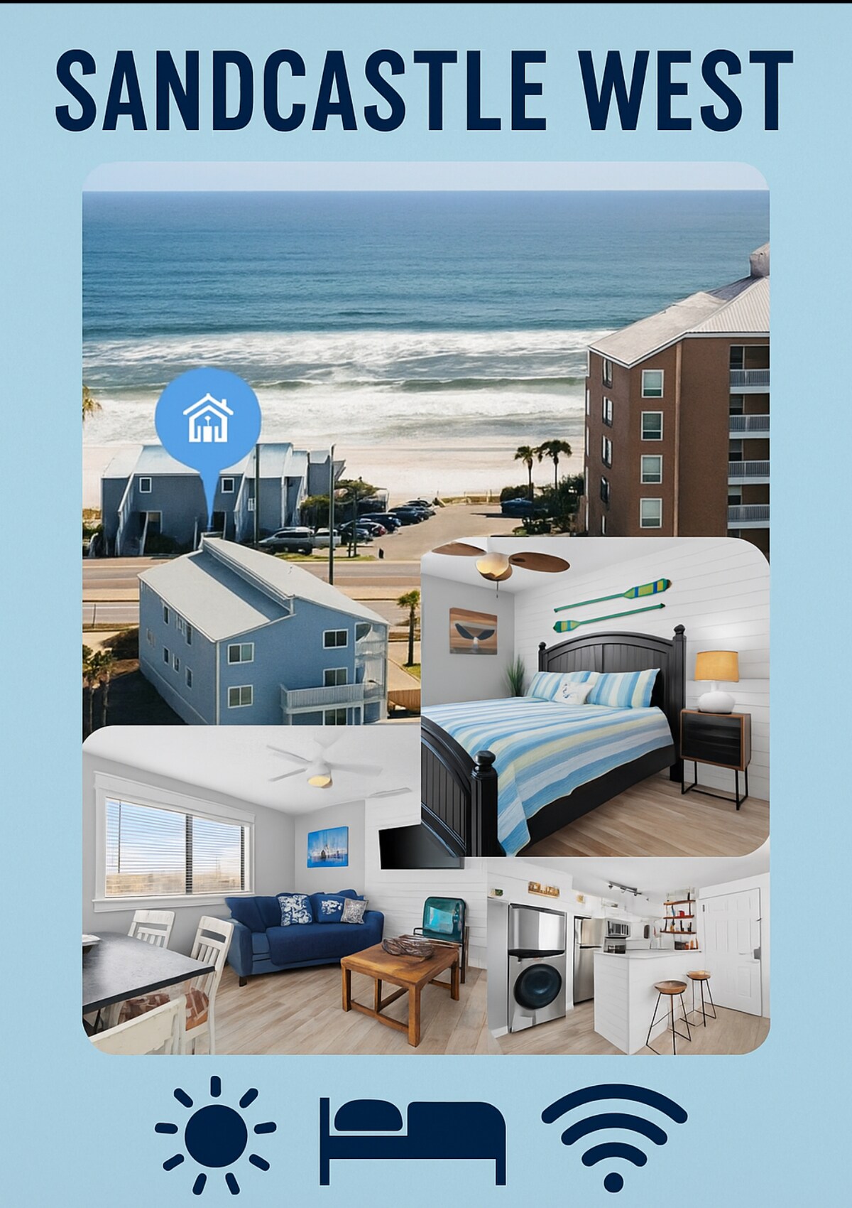 *UBICACIÓN, UBICACIÓN !(en el corazón de toda la acción de Panama City Beach. Sand Castle West está a una milla al este del apartamento. Nuestro condominio está completamente remodelado, frente a la playa y se puede ver la playa desde la mesa del comedor. 2 dormitorios y 1 baño. * Playa fácil y conveniente * Roku TV (2 televisores de 65 pulgadas) Netflix, cada habitación tiene su propio televisor, todos con Roku conect. * La cocina americana incluye ollas, una nevera grande, microondas, cafetera (Keurig), licuadora y platos.