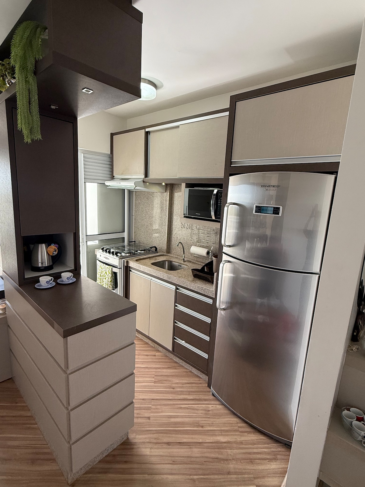 Apto no Mar Grosso con dos dormitorios siendo una suite totalmente amueblada, lista para vivir. Cuenta con una piscina semi olímpica, quioscos de barbacoa, academia, sala de juegos, espacio para mascotas, área de ocio, sauna, Poliesportiva Quadras, Cancha de Bocha, Salón de vacaciones, vigilancia las 24 horas, entre otros. Todo esto está a 350 metros de Praia🌴.