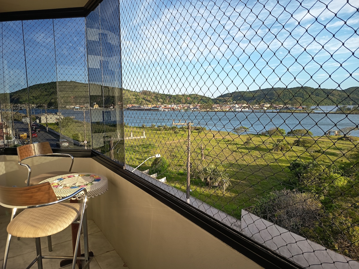 Relaxe com toda a família nesta acomodação tranquila. Apartamento com 2 dormitórios, sendo um suíte com ar condicionado split, sala de estar e cozinha conjugadas, sacada com churrasqueira e área de serviço, excelente vista para o mar e para o canal dos Molhes da Barra.