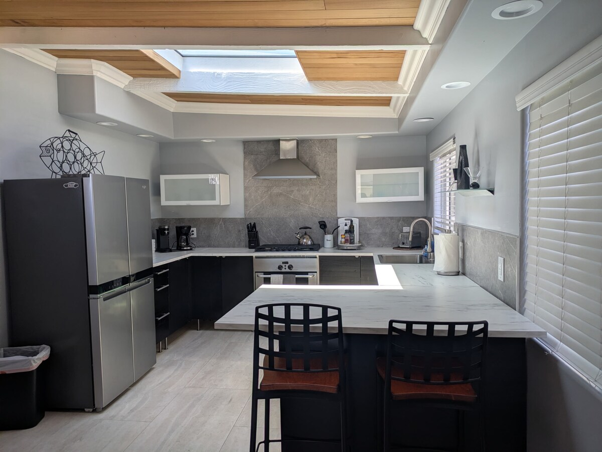 A solo 3 minutos de la autopista 5 se encuentra este estudio adjunto pero privado. Una vez que entres por tu entrada privada, te sentirás como en casa. Cómoda cama tamaño queen, chimenea y cocina americana totalmente equipada con mininevera/congelador si te apetece cocinar. También hay una mesa/escritorio para 2 personas frente a la cálida chimenea eléctrica. El ventilador de techo mantiene las cosas frescas. Baño completo con ducha y bañera. La playa de Salt Creek, el puerto de Dana Point y Trestles están a solo 15-20 minutos. ¡Excelente ubicación!