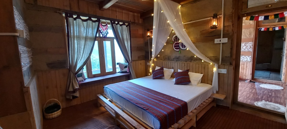 Esta casa Himachali de 90 años ha sido restaurada para organizar una experiencia patrimonial modernizada en medio de los jardines de té de Bir. Esta joya rústica se encuentra principalmente a diez minutos de la parada de autobuses privada de Volvo.