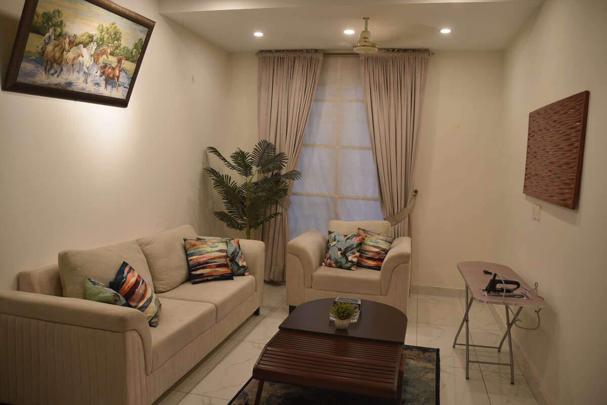 Bienvenido a Twilight, un apartamento único con temática lunar en la Fase 6 de la DHA 🌙 • 1 dormitorio con iluminación acogedora y diseño moderno • Elegante salón con decoración artística y Smart LED de 50" • Cocina totalmente equipada con fogones, microondas y hervidor de agua. • Wifi de alta velocidad y check-in sin contacto 📍 Ubicación privilegiada cerca de Raya Commercial, Dolmen Mall, Ring Road y muchas cafeterías La mezcla perfecta de comodidad y estilo. Es la mejor opción, tanto si viajas por negocios como por placer.