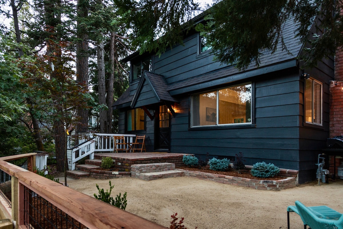 Welcome to Little Bearfoot Cabin! A 1925 single-story cabin with modern spa-like amenities and separate A-Frame office with fast wi-fi for digital nomads. Luxurious summer camp vibes. Cozy up by the fire pit making s'mores, enjoy al fresco dinners, and relax in the hot tub nestled under towering evergreens. If not outdoors in the amazing yard, enjoy central heat. Less than a mile to lake, Village, and Lake Arrowhead Brewery. Access to walk the private trails. Dog & kid friendly. EV Charger