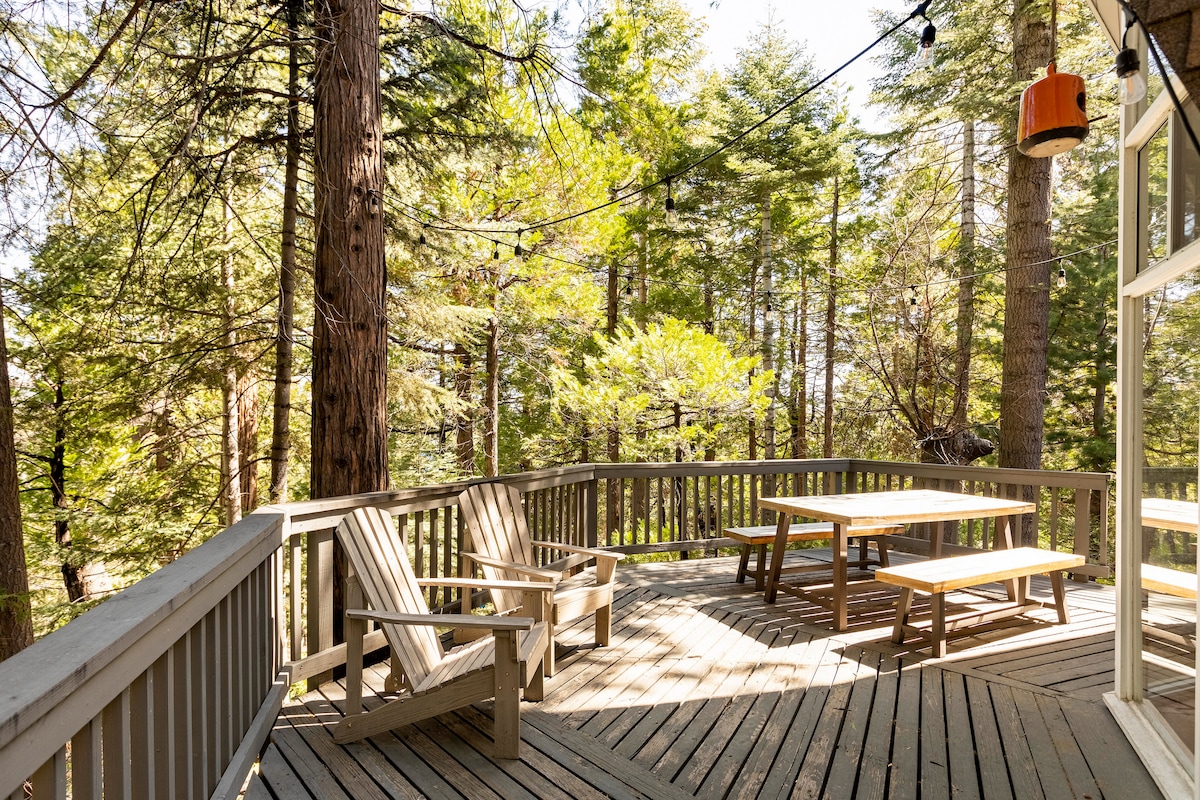 ★ Destacado en Condé Nast Traveler ★ Disfruta de una escapada de diseñador en el Wild Olive Den. Ubicada sobre Running Springs con vistas panorámicas, nuestra cabaña cuenta con una relajante bañera de hidromasaje, cargador EV y 3 terrazas panorámicas. Perfecto para familias o una escapada romántica: 🏔 15 minutos a Lake Arrowhead y Snow Valley Ski 🎡 7 minutos a SkyPark / Santa 's Village 💻 Wifi rápido de 370 Mbps 🧸 Totalmente equipado para niños (Pack & Play/silla alta) ¡+ Aire acondicionado central y generador de respaldo! ¡Relájate junto al fuego o pon un vinilo en el tocadiscos!