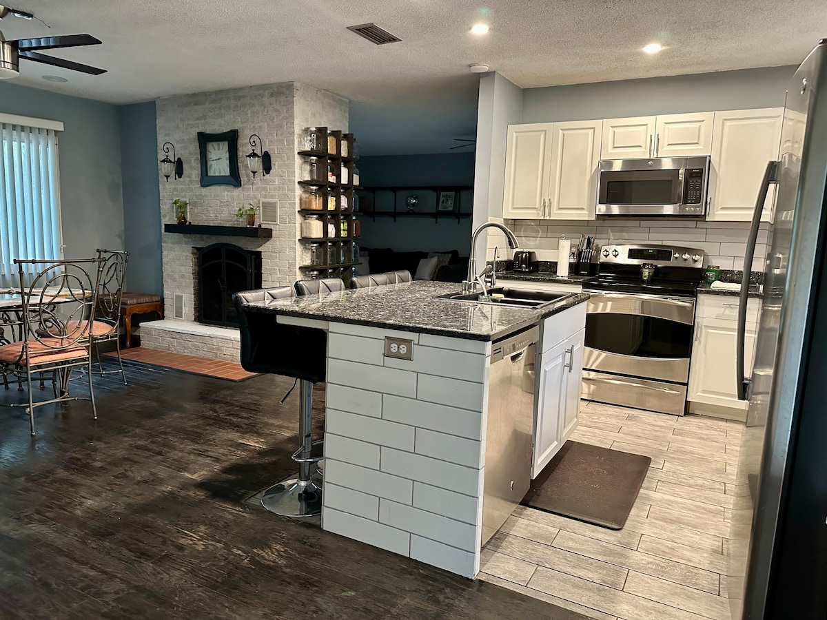Disfruta de tu estancia en el perfecto refugio rural moderno ubicado en más de 3,5 acres. Amplia sala de estar de concepto abierto que abarca más de 2000 pies cuadrados. Suelo y muebles nuevos completamente renovados. ¡Todo lo que oirás serán las vacas que vienen deambulando hasta la propiedad mientras te balanceas en el porche! Si quieres experimentar paz y serenidad, pero también algo de esa magia de Disney, ¡este es el lugar ideal para ti porque también está a 30 minutos de Disney!