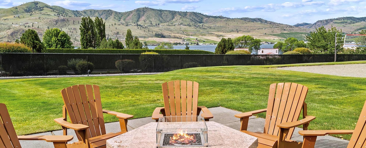 Con vistas inigualables al lago y a la montaña y acceso privado al lago, esta escapada a Chelan ofrece todas las comodidades del hogar con un sinfín de actividades al aire libre a solo unos pasos de tu puerta. Un patio cubierto de hierba se extiende hasta el patio frente al lago, hasta la orilla del lago con escalones que conducen al lago. La casa Carriage está encima del garaje. Tiene un porche envolvente y un patio comedor con zona de barbacoa. En el interior, disfrutarás de habitaciones llenas de sol y vistas al lago y al viñedo desde todos los espacios.