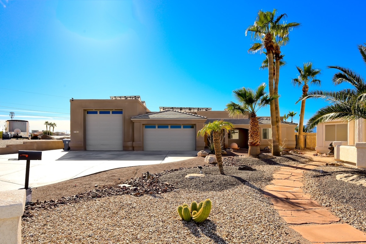 Casa recientemente renovada en Lake Havasu con una decoración moderna, una nueva piscina y bañera de hidromasaje. Relájate con estilo con servicios actualizados y un diseño espacioso. Crea recuerdos inolvidables mientras realizas tus actividades favoritas, incluida la piscina de 36 pies, la parrilla de gas (trae tu propio propano), el juego de la herradura, el juego de la bolsa de maíz, la fogata, el paseo en bote, la pesca y mucho más con toda la familia en un lugar tranquilo. Hay un montón de estacionamiento disponible para tu barco o autocaravana.
