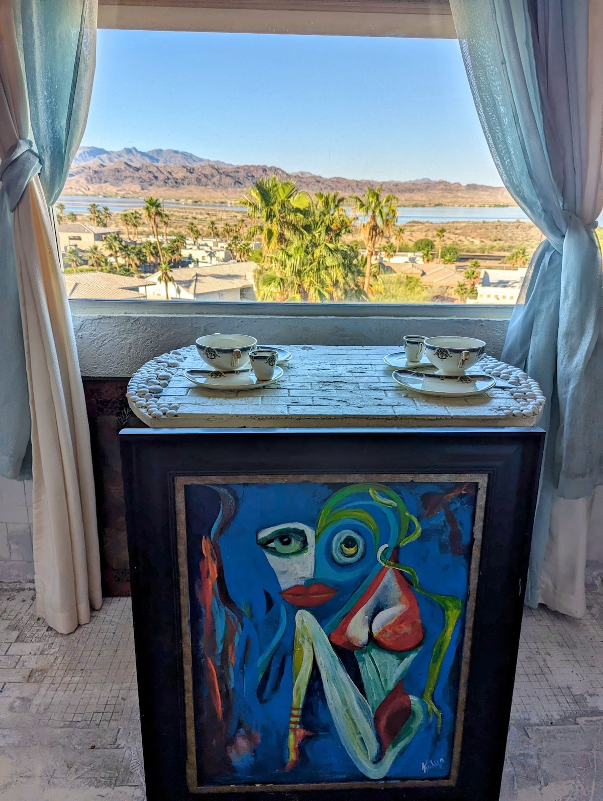¡Bienvenido a tu hogar lejos de casa! Este apartamento recién remodelado y céntrico está a poca distancia a pie del puente de Londres, el parque Rotary y el campo de golf. Nuestro apartamento tiene capacidad para cuatro personas y ofrece dos camas tamaño queen (1 cama tamaño queen y 1 colchón de espuma viscoelástica). Las características adicionales incluyen TV, wifi gratuito, chimenea eléctrica, lavadora y secadora, vestidor y mucho más. La comunidad de apartamentos tiene piscina, spa, zona de picnic, cancha de tenis/voleibol y zona de parrilla. Hay aparcamiento gratuito para barcos y huéspedes.
