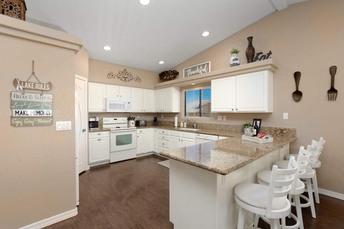 RENOVADO Invierno 2023 - ¡Este alojamiento en el oasis del desierto de Havasu te espera! Nuestra casa cuenta con 3 dormitorios, 2 baños y está impecablemente limpia. Esta casa está convenientemente ubicada cerca de todo en Lake Havasu y a pocos minutos de la rampa de lanzamiento Marina o de la rampa de lanzamiento Windsor. Tiene pintura nueva, electrodomésticos nuevos, toallas nuevas, utensilios de cocina nuevos, TV inteligente de 65 pulgadas en la sala de estar y de 55 pulgadas en todos los dormitorios. ¡Barbacoa y mucho más! Esta casa es perfecta para traer a tu familia o entretener a tus amigos en cualquier época del año.