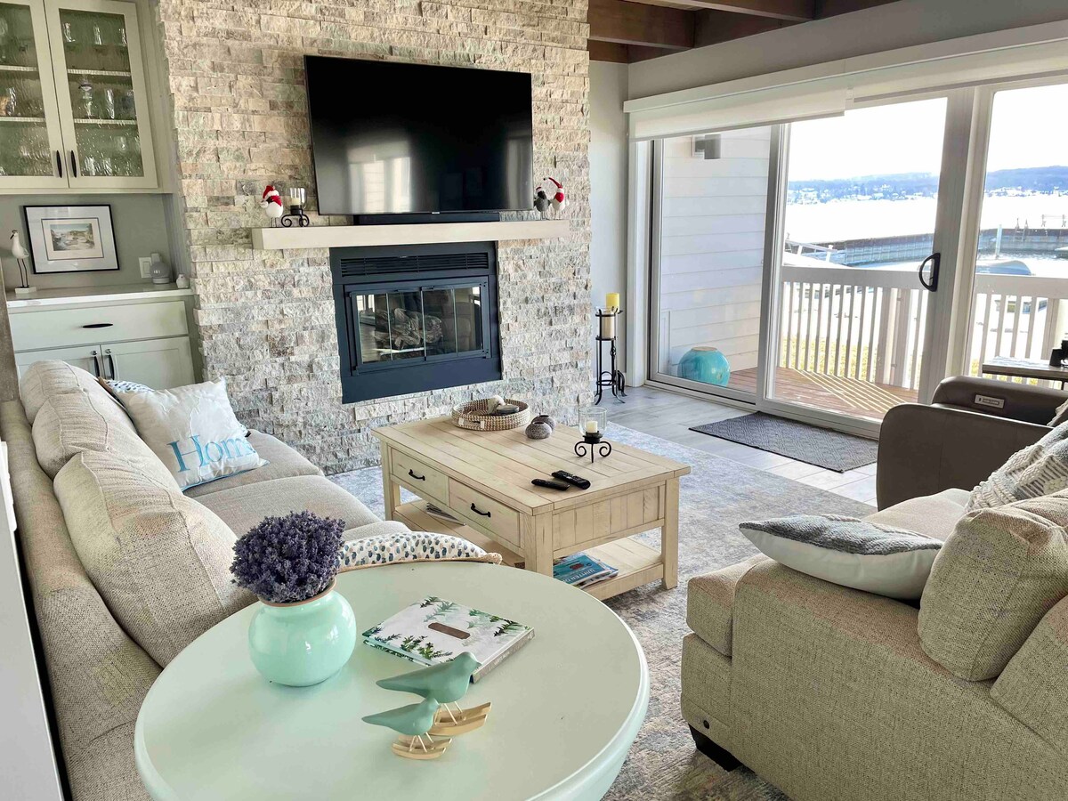 ¡Apartamento de lujo bellamente renovado con impresionantes vistas al lago! Perfecto para alojamiento ejecutivo a corto plazo. Encimeras de cuarzo, baldosas de baño con calefacción, bañera de inmersión de 65 galones, ducha de rociado corporal separada, combo de lavadora/secadora, nevera con puerta francesa y espectaculares suelos de madera nuevos de alto brillo. Simplemente la mejor ubicación de la zona. Frente al mar y a pocos pasos de restaurantes, bares, vela, senderos naturales y remo. ¡Hay kayaks y tablas de paddle surf disponibles a solo unos pasos en el Centro de Vela MSU!
