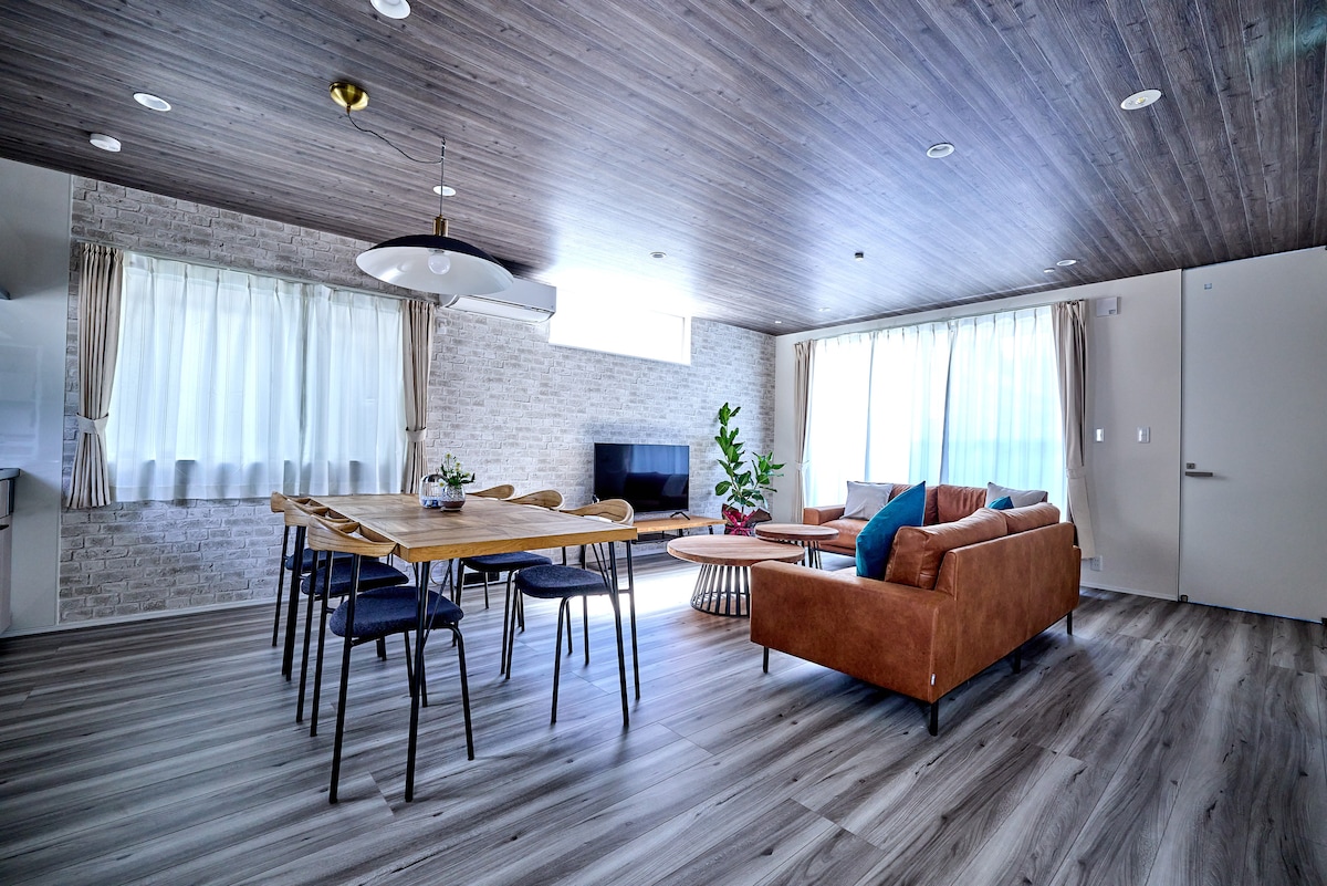 当宿は河口湖駅・富士急ハイランド駅の両方、大型スーパーが徒歩圏内であり、様々な観光地に足を延ばす拠点として最適です。ベランダ・リビングからは富士山がご覧いただけます。 リノベーションされた一軒家で、美しい自然に囲まれた立地にあり、日常の喧騒から離れてリラックスできます。ベランダのダイニングテーブルから、富士山を眺めながらゆったりとした時間を楽しめます。 BBQ設備も整っており(※別料金)、家族や友人と一緒にアウトドアクッキングを楽しむことができます。室内は高級感溢れる内装で、快適さを追求したデザインとなっています。自然の中でのんびりと過ごしながら、特別な時間をお楽しみください。 ドラム式の洗濯乾燥機、Wifiを完備しており、リモートワークを行いながらの長期滞在にもお勧めです。カタンやカードゲーム・TVもあり、室内でも快適にお過ごしいただけます。 春は富士山と桜の絶景鑑賞、夏は富士登山、秋は紅葉、冬は雪見富士・スキーと季節ならではの自然と文化をお楽しみいただけます。河口湖湖畔のサイクリングやカヌー体験等もおススメです。 『お気に入りに保存』すると次から探し易くなり、お勧めです。
